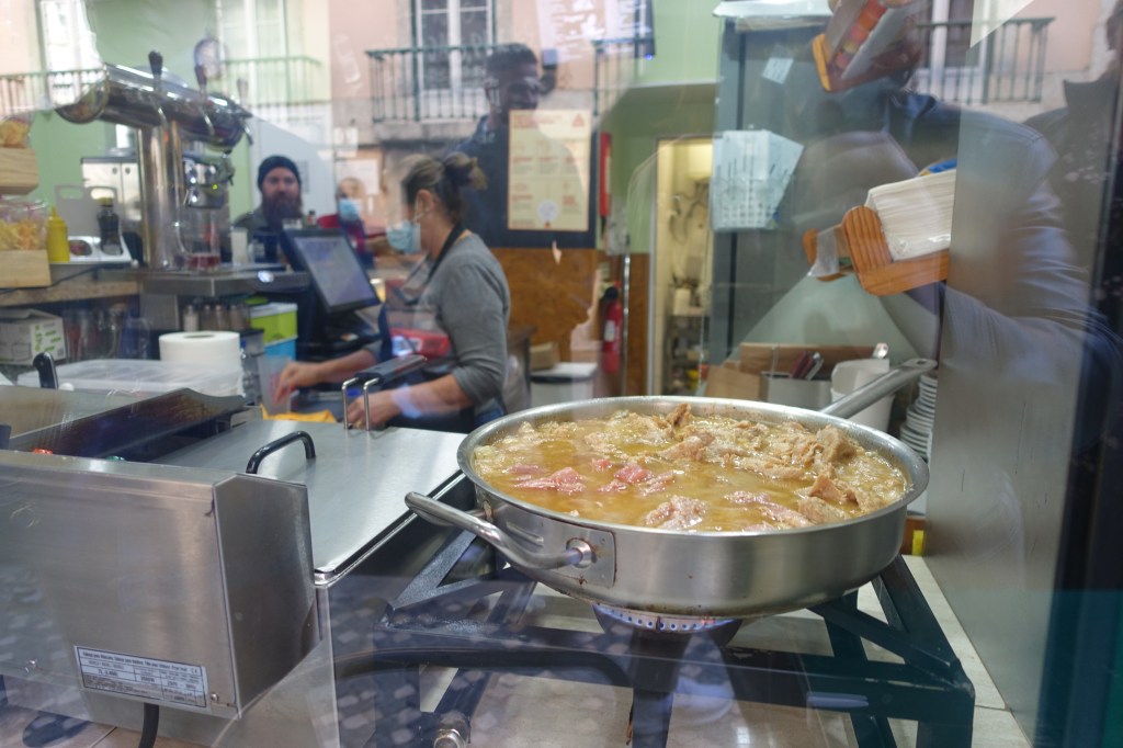 ● A small restaurant that specialized in Bifana– a slow-stewed pork sandwich that I grew up eating– served with an ice-cold regional beer