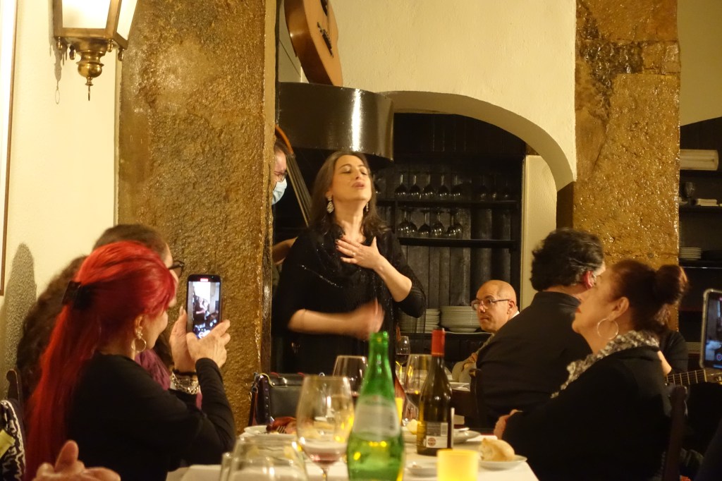When researching where to stay for our short visit, I wanted something with a lot of walkability and a good view. The Hotel Áurea Museum fit the bill for us and we loved it! The hotel features a permanent archaeological exhibition and a small museum showcasing the area from antiquity through to more modern times of kings and courts. The decor in the hotel also pays homage to Portugal’s Age of Discovery, with maps and nautical theming. The staff was incredibly accommodating, they had a bottle of sparkling wine in our room waiting for us each evening, and upgraded us to a penthouse room with a lovely, large balcony viewing the river. The hotel is in the Alfama neighborhood, one of Lisbon’s oldest areas. The neighborhood is built on steep hills, along the bank of the Tagus river, with cafes lining the streets, and Fado clubs sprinkled throughout. Fado is a style of Portuguese music that “originated” in the 1820’s but is thought to have much older origins. Fado is known for how expressive and profoundly melancholic it is, a single performer sings with the backing of a few musicians, including a classical guitarist. We were lucky enough to snag the last table at Clube de Fado, near our hotel, for dinner and a Fado performance. The music is truly haunting, even without a solid understanding of the language, you can feel the emotion pouring out of the singers. Every 20 minutes or so a new performer would come on and sing 4-5 songs and we enjoyed it so much that we stayed until we had cycled through the rotation of singers 2 times. The food was outstanding, featuring classic Portuguese dishes with a wine list that also showcased wines of Portugal.