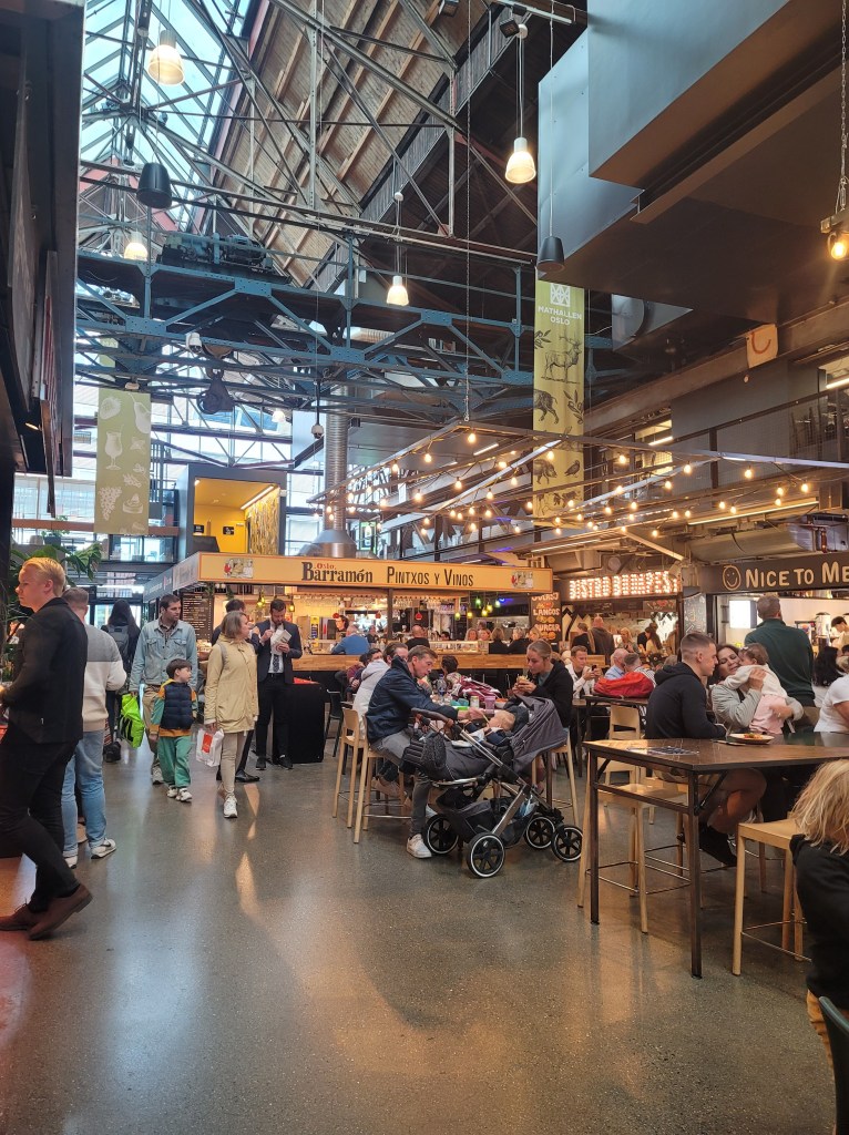 We started out Saturday at Mathallen, a food hall located in Vulkan, featuring everything from artisanal cheese to fresh seafood. If you’re feeling adventurous, try some brown cheese – a Norwegian specialty made from goat’s milk that has a unique caramel-like flavor. I went to the Italian stall, Via Italia, for a delicious Amatriciana, while David got paprikash from Bistro Budapest. A unique, and unfortunate, part of this food hall is that there is dedicated seating for each stall, so if you are with a group, you all must eat at the same place if you want to sit together. These rules are a big turnoff, especially when enforced. There is a tiny bit of open seating in the center of the food hall but if you sit here, you cannot have a drink with your food as each place is individually licensed.