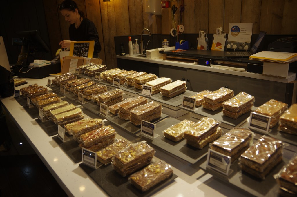 Picture this, it is rainy and a little chilly (especially for a Floridian) and you see a business called “FLAPJACKERY.” In that cold-driven moment, almost nothing sounds better than a stack of warm flapjacks, right? Now, imagine my chagrin when I discovered that “Flapjack” means something very different in the UK (luckily, still quite tasty).