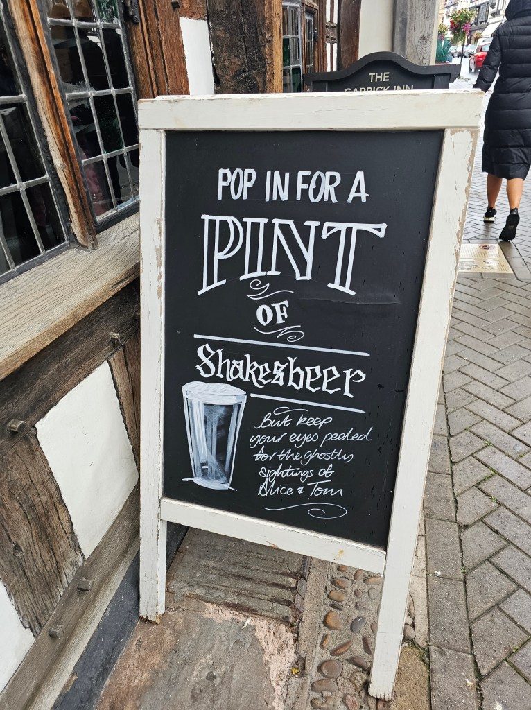 Before concluding our journey, we couldn’t resist stopping for a pint at The Garrick, a traditional English pub frequented by locals and tourists alike. Nestled in the heart of Stratford-upon-Avon, on what they call “Statford’s Historic Spine,” the Elizabethan half-timbered building is quite charming. Parts of the building date back to the 14th century but the current façade can be dated to 1718. This iconic pub not only offers a glimpse into the past but also serves a variety of locally brewed beers, providing a taste of authentic English ale amid its historic ambiance. I can’t think of a better way to end an afternoon in Stratford than a pint in The Garrick.