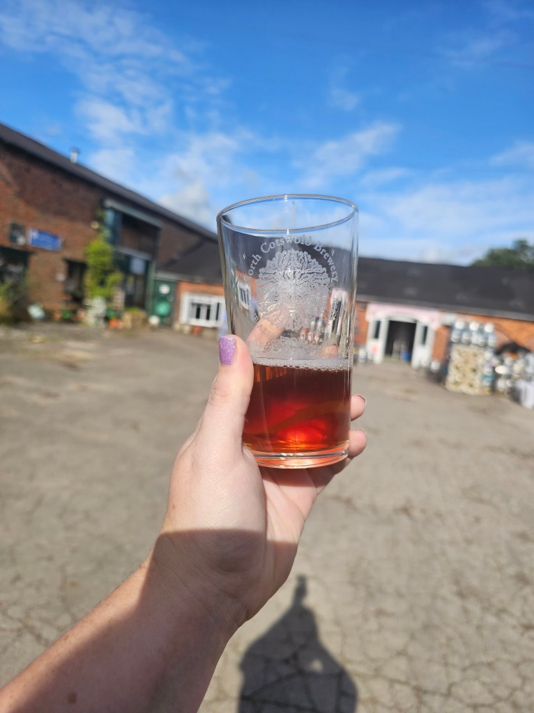 After lunch and drinks, it was time to continue our adventure! We made our way to the North Cotswolds Brewery, where we were treated to a behind-the-scenes tour of this artisanal brewery. Surrounded by rolling hills and bucolic scenery, the brewery offers a taste of authentic Cotswold craftsmanship. We sampled a selection of their handcrafted ales, each one brimming with character and brewed with locally sourced ingredients. There is no tasting room here, as the locals come by and pick up their beer, but they were gracious enough to let us try anything that piqued our interest before buying bottles for takeaway.