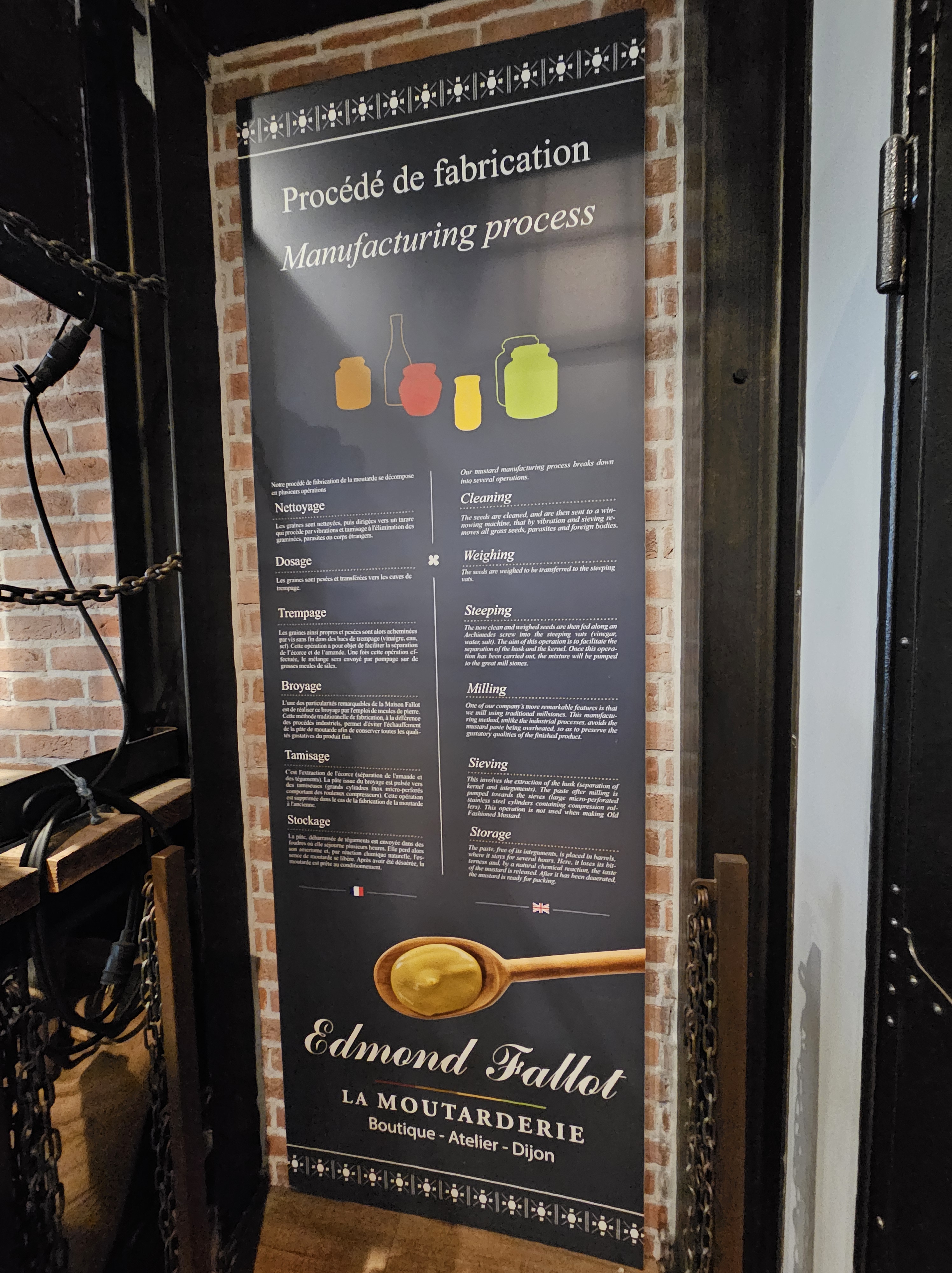 No visit to Dijon would be complete without a mustard tasting. We headed to the La Moutarderie Edmond Fallot store near the Notre Dame Cathedral. La Moutarderie Edmond Fallot is an artisanal mustard producer that has been crafting this iconic condiment since 1840. The small store contained a museum offering a fascinating glimpse into the mustard-making process, from the grinding of seeds to the addition of various flavorings.