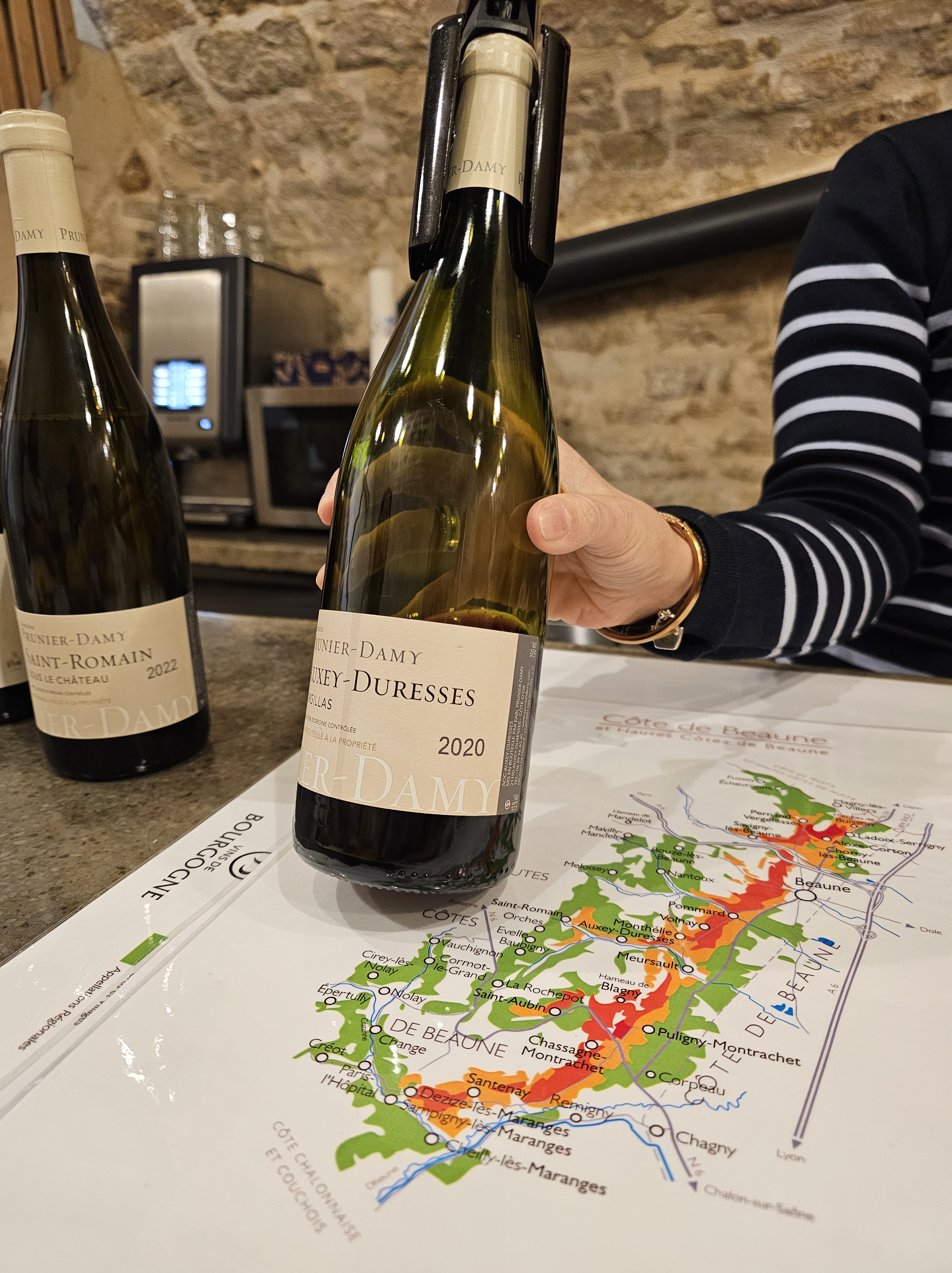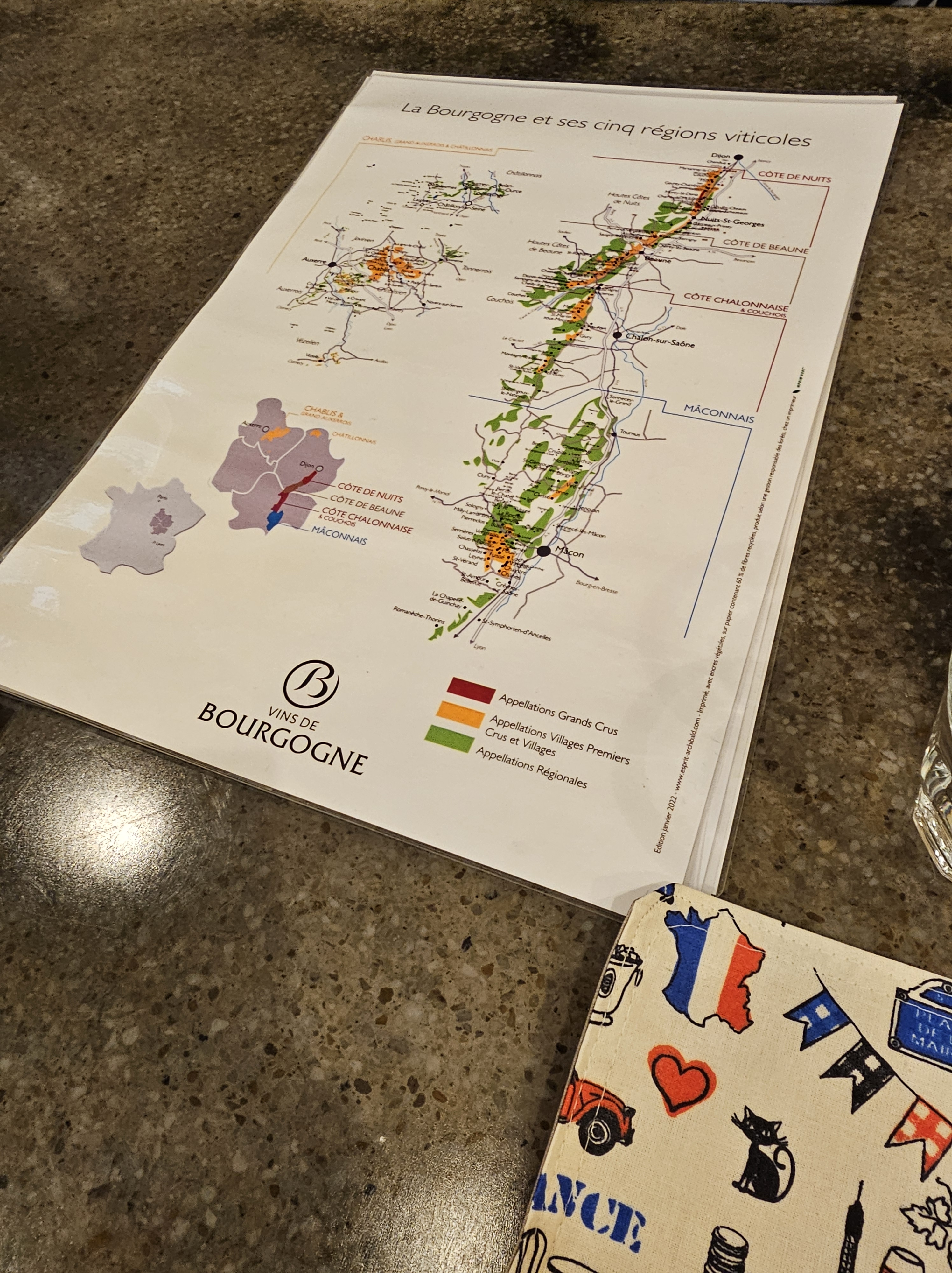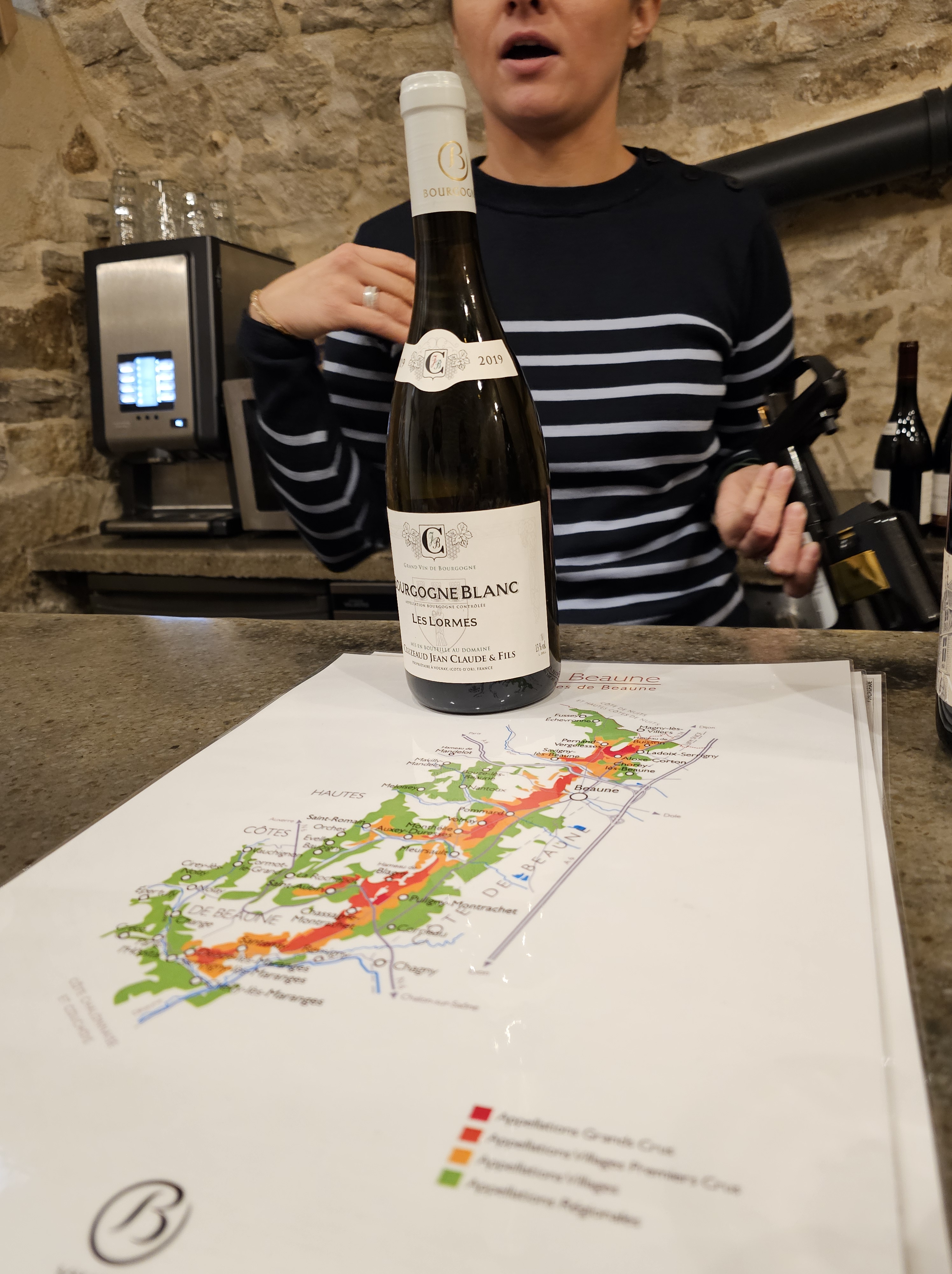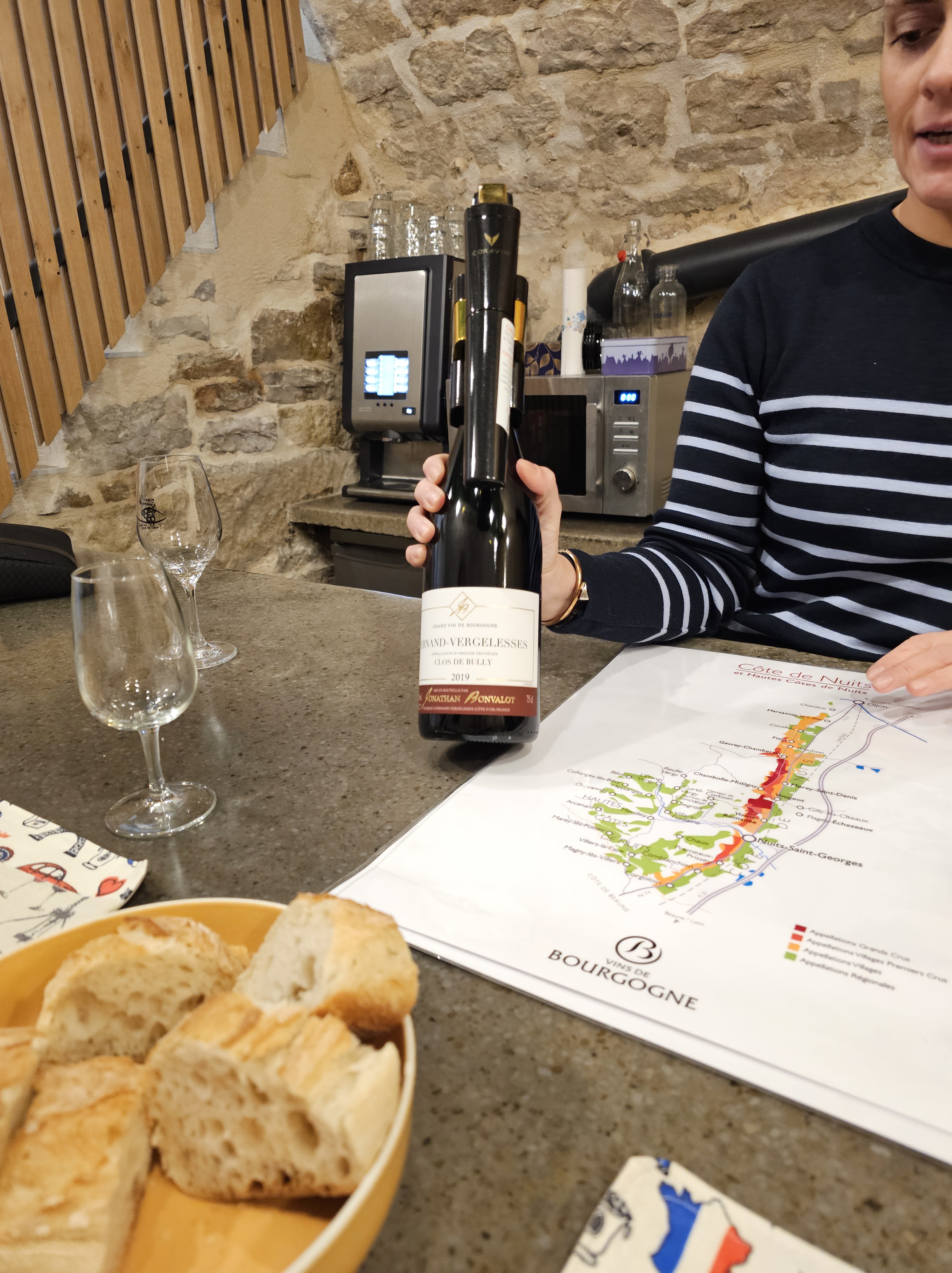 Emeline taught us quite a lot about the Burgundy wine region, which offers a rich tapestry of viticultural history dating back to Roman times, with its monastic roots further shaping its prestigious reputation. The region is primarily known for its exquisite Pinot Noir and Chardonnay, which thrive in its unique terroir—a combination of climate, soil, and topography that imbues the wines with distinct characteristics. Burgundy’s terroir is incredibly diverse, with its famous Côte d’Or escarpment providing an ideal environment for vine cultivation. The limestone-rich soils, varying microclimates, and the meticulous attention to vineyard orientation all contribute to the complexity and distinctiveness of Burgundy wines. Burgundy’s vineyards are meticulously classified, with the most coveted Grand Cru and Premier Cru wines adhering to strict regulations that ensure their quality and authenticity. Notably, the Appellation d’Origine Contrôlée (AOC) system governs the production, demanding precise practices in vineyard management and winemaking. An interesting fact about Burgundy is its unique practice of terroir expression through small, often family-owned plots known as “climats,” each producing wines with their own unique identity. This commitment to tradition and excellence makes Burgundy wines celebrated worldwide for their elegance, complexity, and remarkable aging potential.