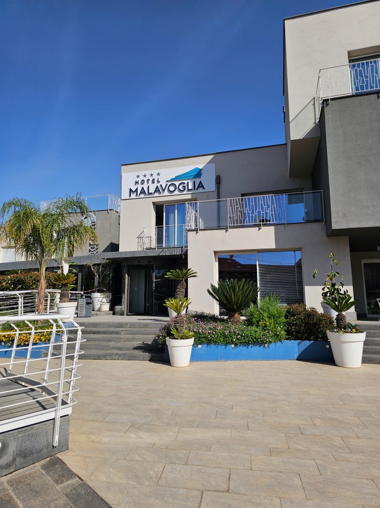 As mentioned, I booked a hotel before we landed because I am not really a “go with the flow” gal when it comes to accommodations. I had a couple prerequisties for wherever we stayed on this night and they were that the hotel have free parking and be walking distance to the main sites that I wanted to see. Hotel Malavoglia fit the bill for what I was looking for, it is a charming and conveniently located accommodation, perfect for travelers seeking both comfort and accessibility. Situated just a short stroll from the picturesque waterfront, the hotel offers a range of modern amenities, including an inviting outdoor pool, complimentary Wi-Fi, and a cozy bar where guests can unwind after a day of exploring. We only spent one evening here but the room was clean and comfortable and the staff was friendly, what more could we ask for? Whether you’re lookinh to marvel at the Cyclopes Rocks, enjoy fresh food at a local eatery, or simply relax by the pool, Hotel Malavoglia provides an ideal base in Aci Trezza.