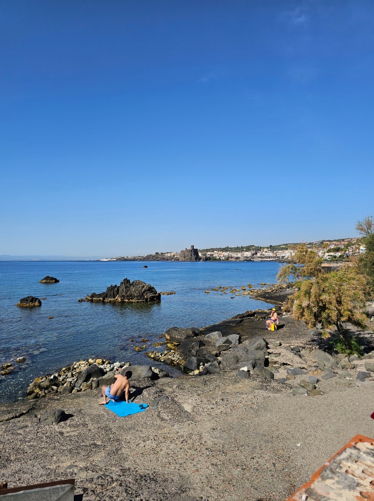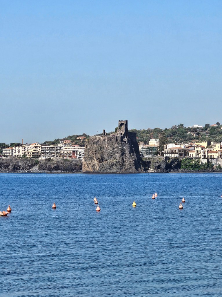 No visit to Aci Trezza would be complete without exploring the Norman Castle, or “Castello Normanno,” situated on a rocky promontory overlooking the sea. This medieval fortress offers a fascinating glimpse into the region’s history and strategic importance. Unfortunately, our visit was too short to pop in and we had to settle for seeing it from a distance. Together, the Cyclopes Rocks, water promenade, and Norman Castle create a captivating blend of mythology, natural beauty, and historical intrigue that makes Aci Trezza a truly unique destination.