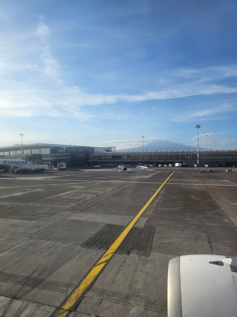 Mount Etna greeting visitors upon arrival at Catania-Fontanarossa Airport (CTA).