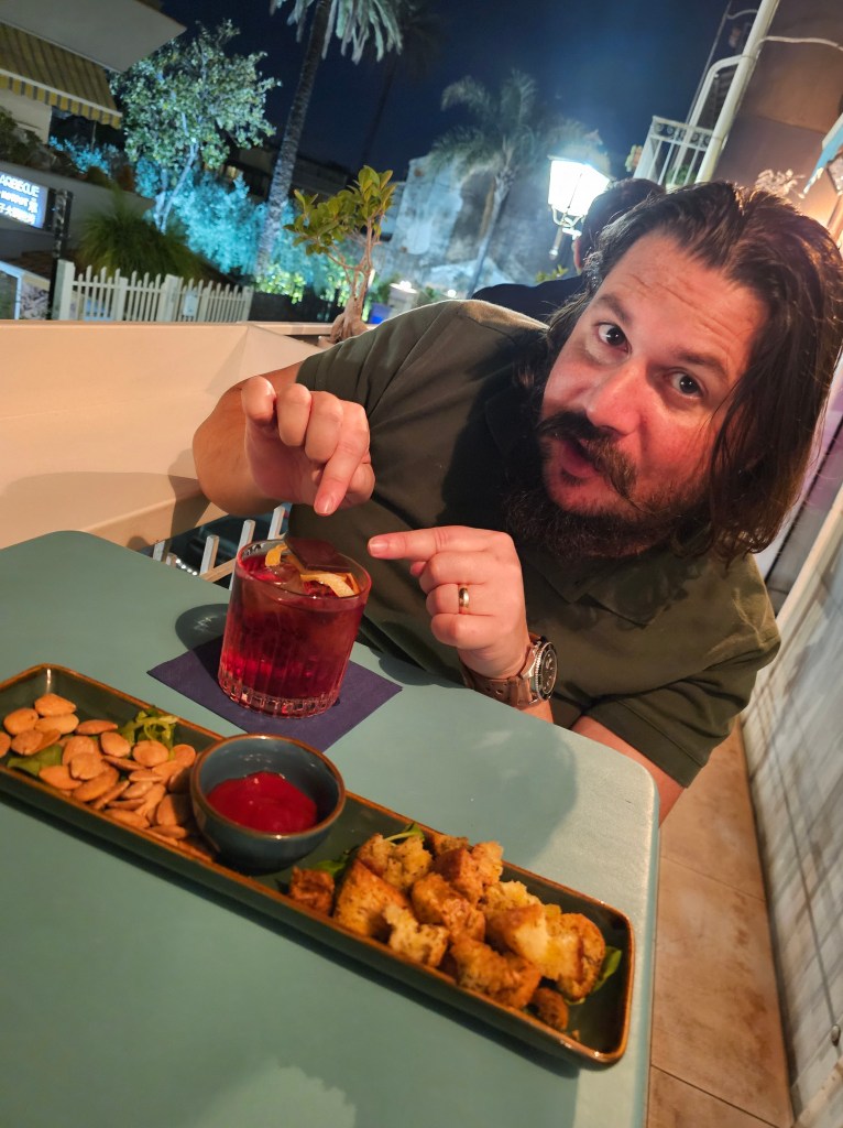After dinner, we made our way down the street to the aptly named Lounge Bar, a chic spot with a beautiful terrace offering a peek into the local city scene. We indulged in expertly crafted cocktails while enjoying the warm evening breeze. One of the charming aspects of drinking in Europe is the tradition of being served small snacks with your drinks, and the Lounge Bar did not disappoint. Our cocktails were accompanied by an array of tasty nibbles, including olives and nuts. It’s a custom that adds a touch of hospitality and makes the experience even more enjoyable—a practice that America could certainly adopt.