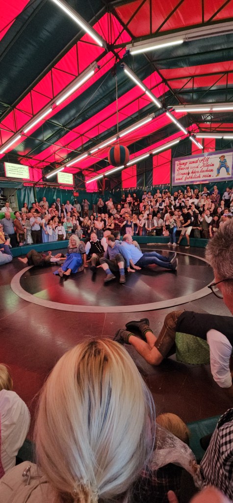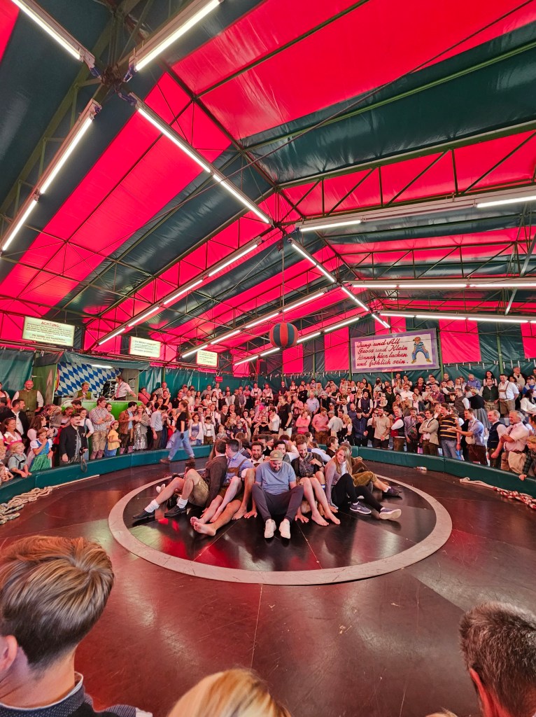 After the beer tents closed at 10:30 PM (something many people don’t realize until they’re asked to finish their last Maß), we wandered over to a wine tent. It turns out that when the beer stops flowing, many people migrate to wine tents or underground cellars that stay open a bit later—perfect for squeezing in a final toast before calling it a night.