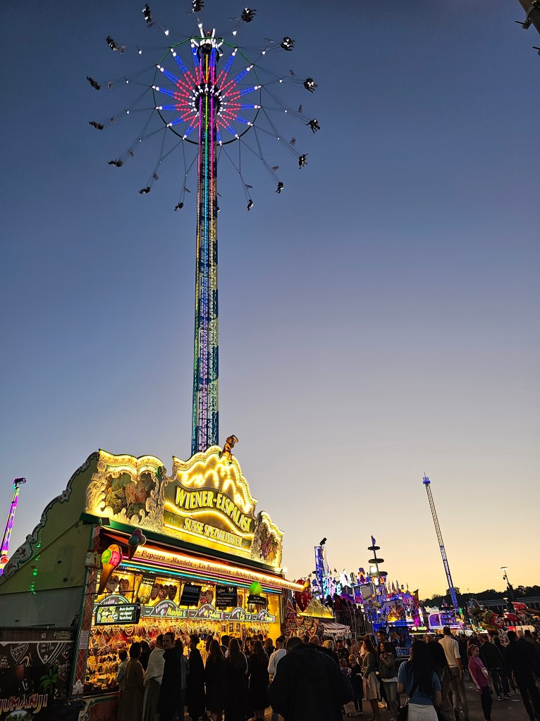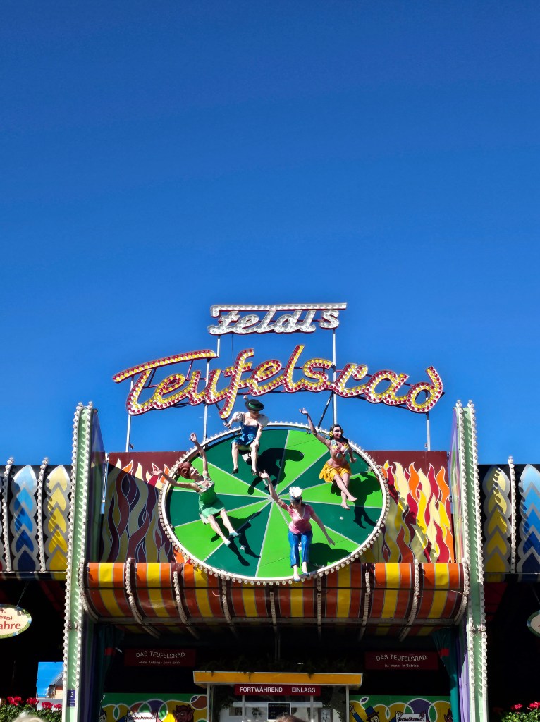 Feeling bold after our meal and beer, we ventured onto Teufelsrad (The Devil’s Wheel), an old-school ride that involves sitting in the center of a spinning platform while the operator tries to knock you off—needless to say, it’s a riot to both watch and experience.