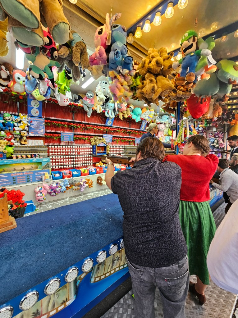 Our first night at Oktoberfest was a nostalgic reunion with Melanie, an old friend and Munich local who knows the festival like the back of her hand. She treated us to an insider’s tour of the traditions she grew up with. We started with a fun round of shooting, where David showed his skills and won me the only souvenir that we have from the festival, a small stuffed bear.